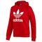 This classic women's adidas Originals Trefoil Logo Hoodie is made of comfortable fleece with a drawcord hood, a kangaroo pocket and an outsize logo. The pullover hoodie also features extra-long cuffs and hem for feminine style.